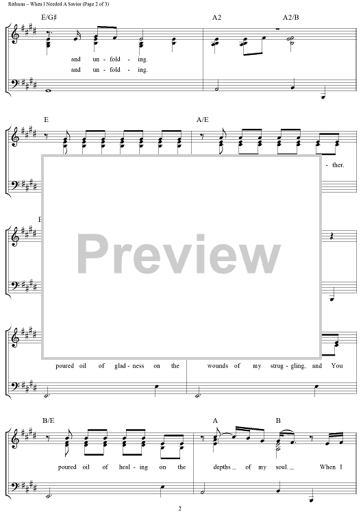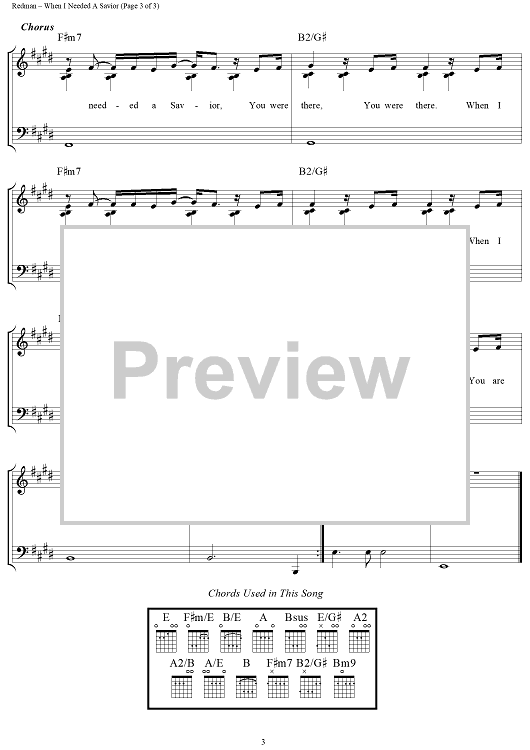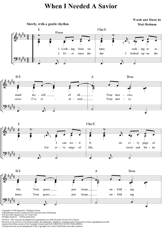 Digital Sheet Music for When I Needed a Savior by Matt Redman scored for Piano/Vocal/Chords; id:113518