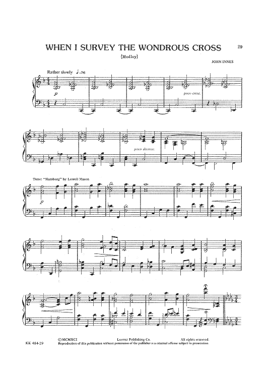 Digital Sheet Music for When I Survey the Wonderous Cross by Various, John Innes scored for Piano Solo; id:433622