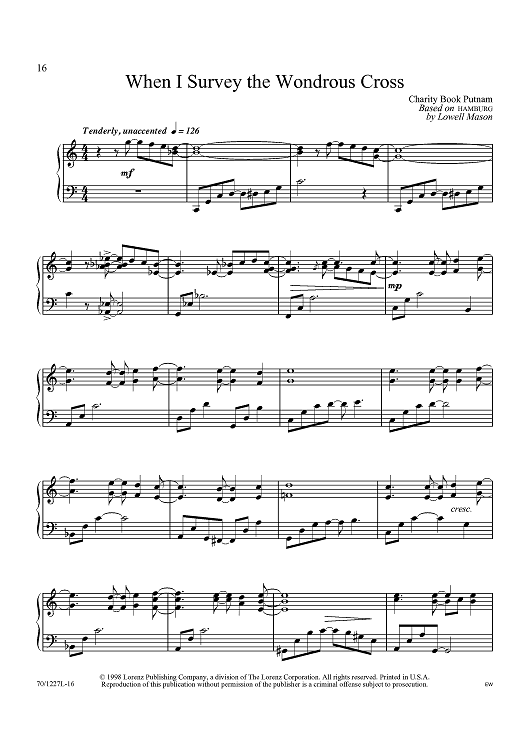 Digital Sheet Music for When I Survey the Wondrous Cross by Lowell Mason, Charity Book Putnam scored for Piano Solo; id:433765