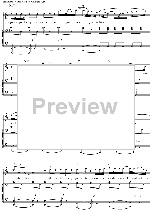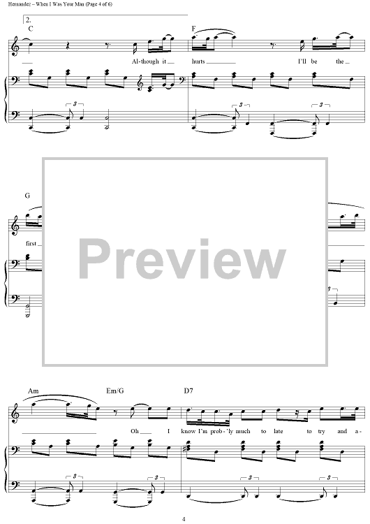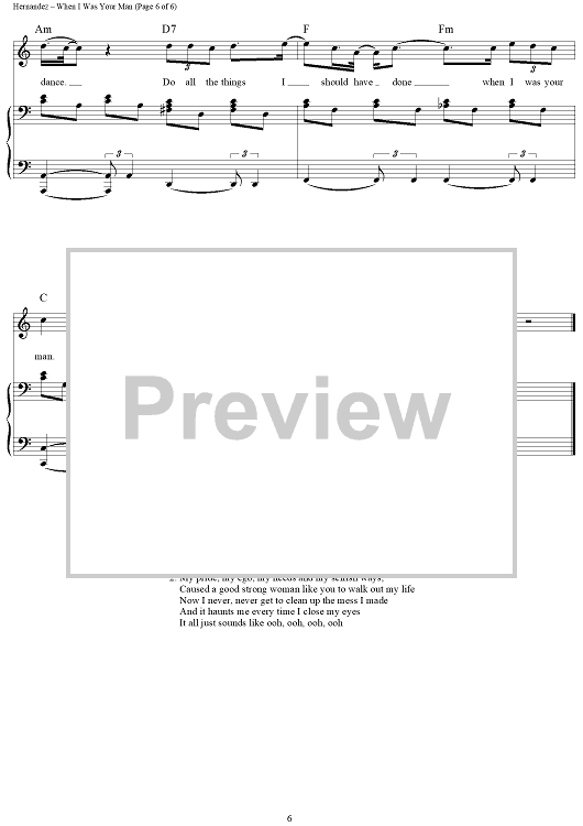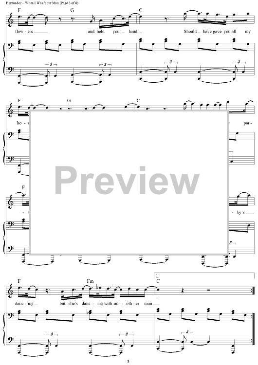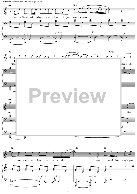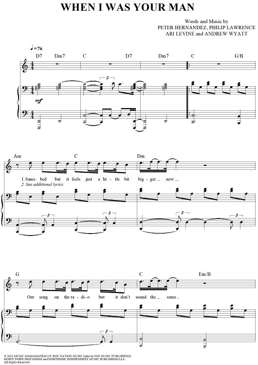 Digital Sheet Music for When I Was Your Man by Andrew Wyatt, Peter Hernandez, Ari Levine, Philip Lawrence, Bruno Mars scored for Piano/Vocal/Chords; id:434105
