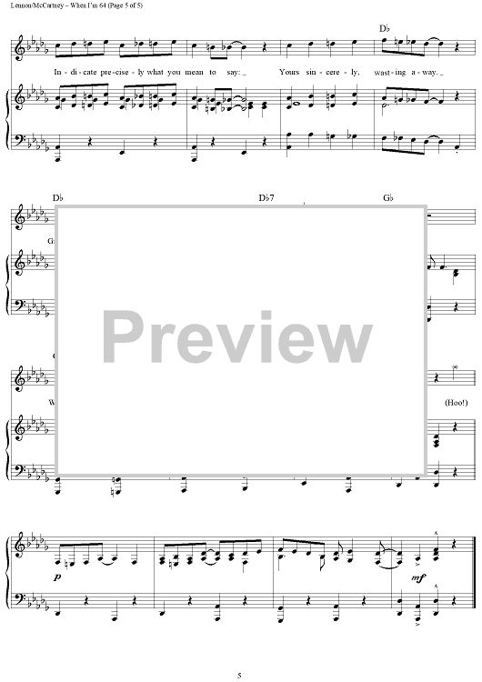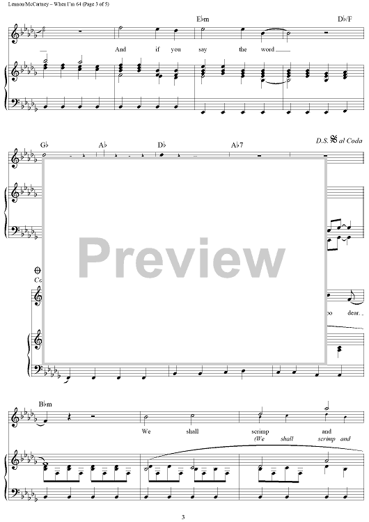 Digital Sheet Music for When I'm 64 by Paul McCartney, The Beatles, John Lennon scored for Piano/Vocal/Chords; id:361648