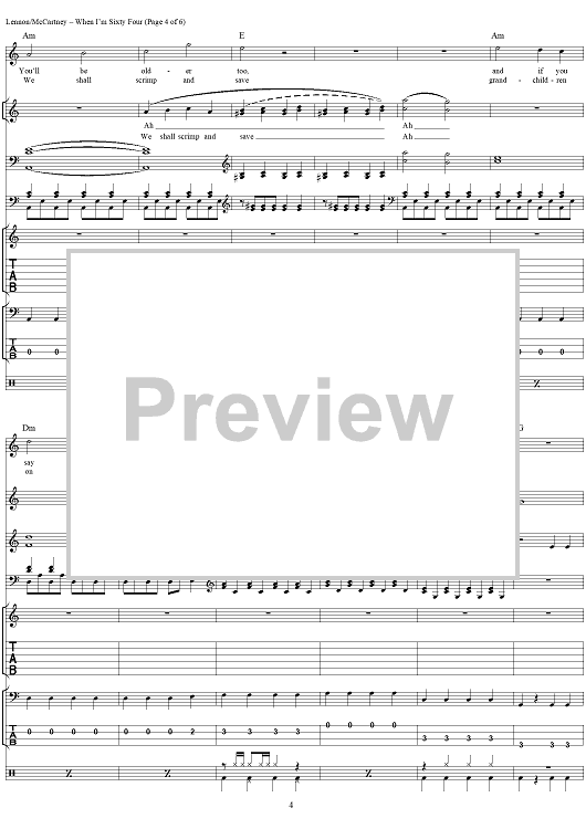 "When I'm Sixty Four" Sheet Music by The Beatles
