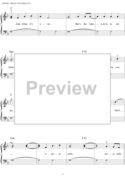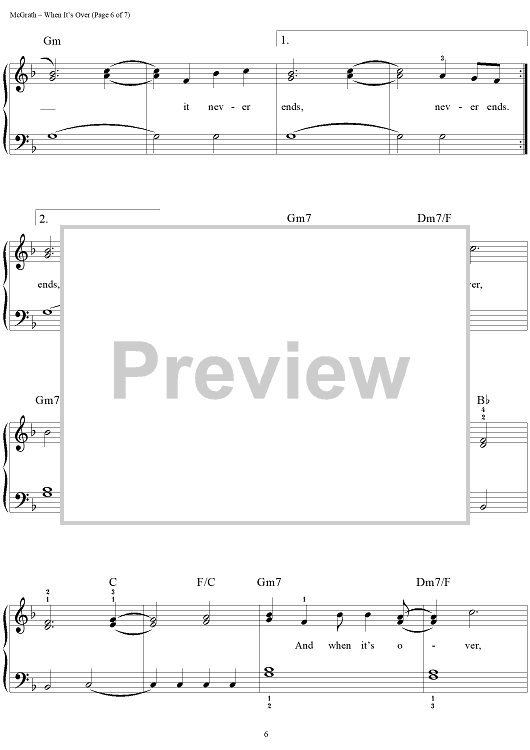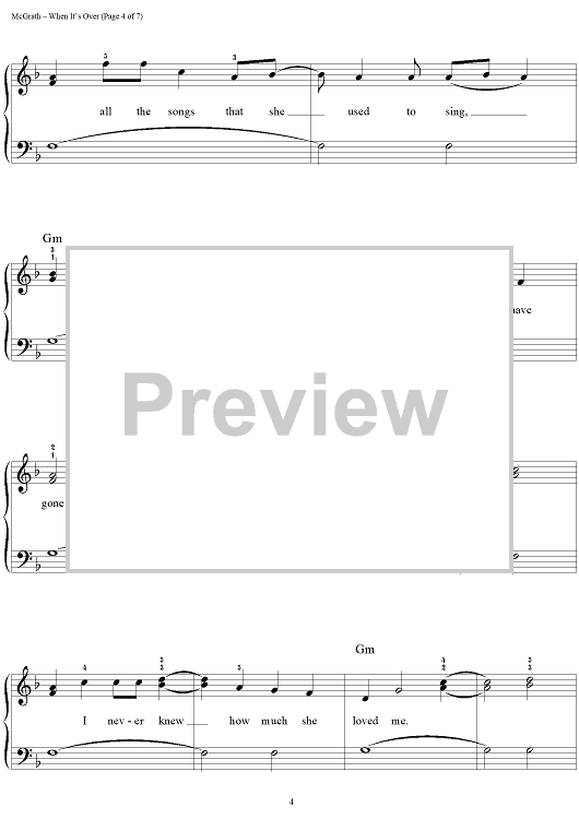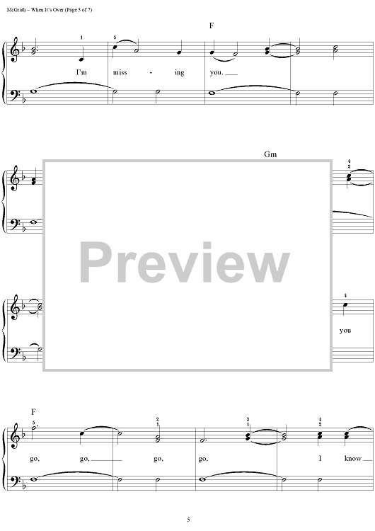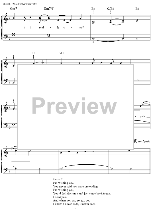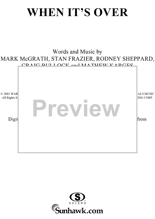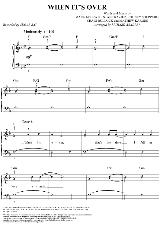 Digital Sheet Music for When It's Over by Richard Bradley, Mark McGrath, Stan Frazier, Rodney Sheppard, Craig Bullock, Murphy Karges, Sugar Ray scored for Easy Piano/Vocal; id:284540