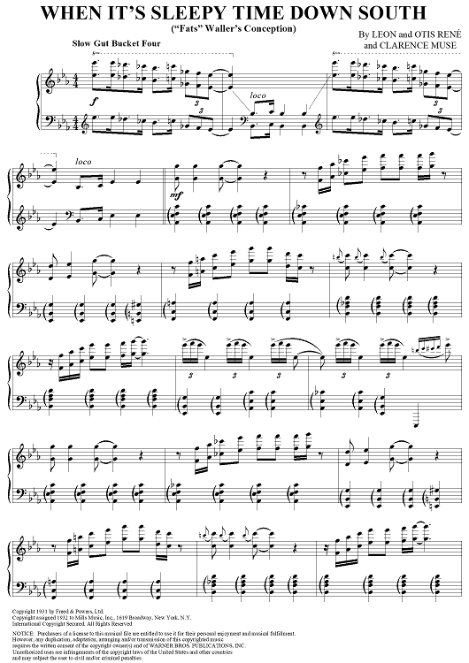 Digital Sheet Music for When It's Sleepy Time Down South (''Fats'' Waller's Conception) by Fats Waller, Leon Rene, Otis Rene, Clarence Muse scored for Piano Solo; id:316980