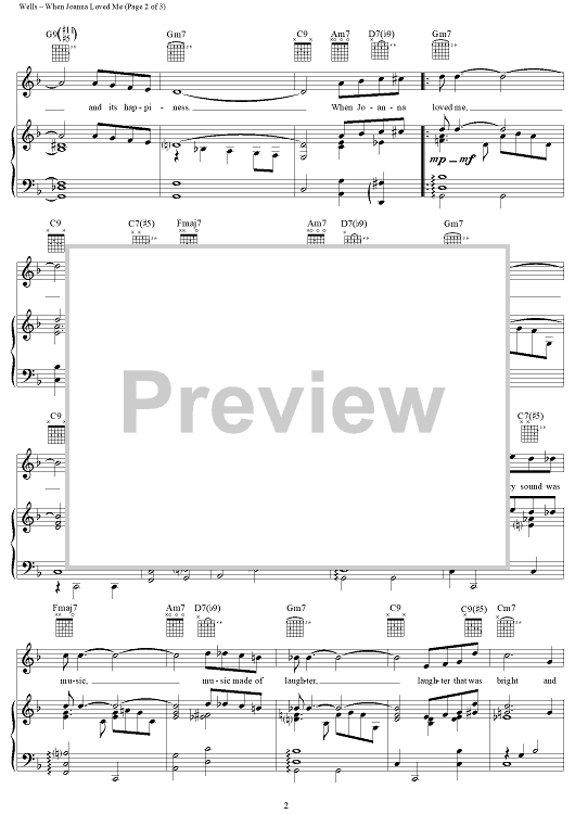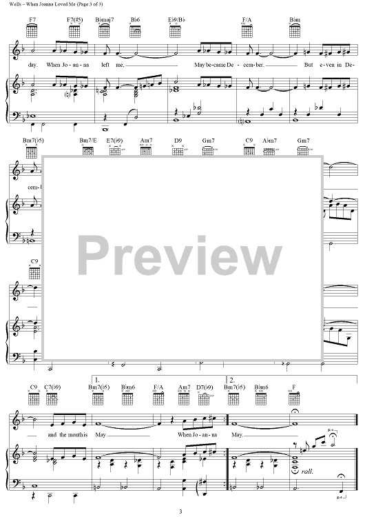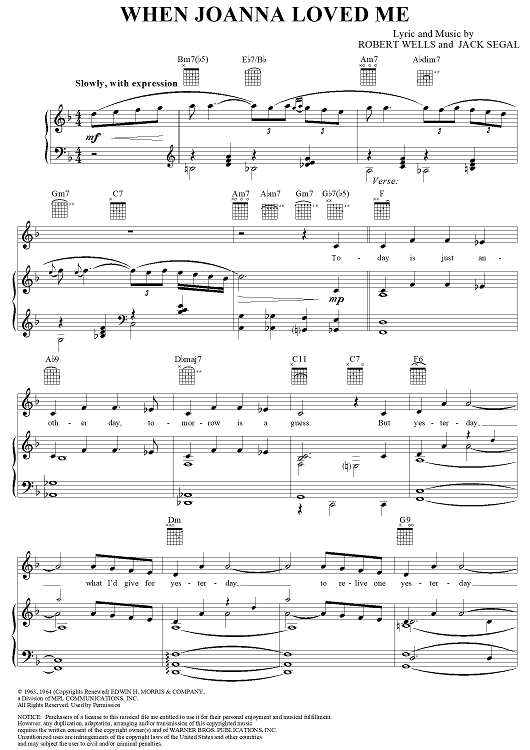 Digital Sheet Music for When Joanna Loved Me by Tony Bennett, Robert Wells, Jack Segal scored for Piano/Vocal/Chords; id:187729