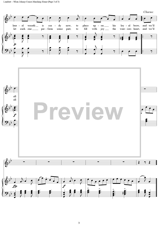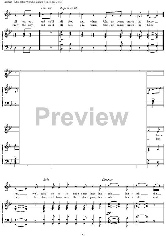 Digital Sheet Music for When Johnny Comes Marching Home by Louis Lambert scored for Piano/Vocal/Chords; id:456569