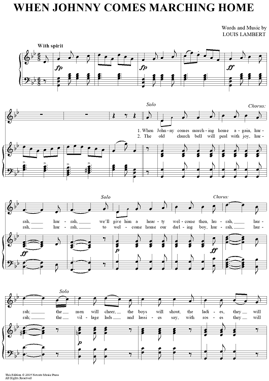 "When Johnny Comes Marching Home" Sheet Music by Louis Lambert