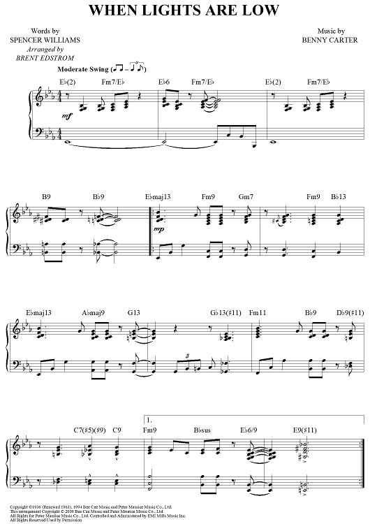 Digital Sheet Music for When Lights Are Low by Benny Carter, Spencer Williams, Brent Edstrom scored for Piano Solo; id:465707