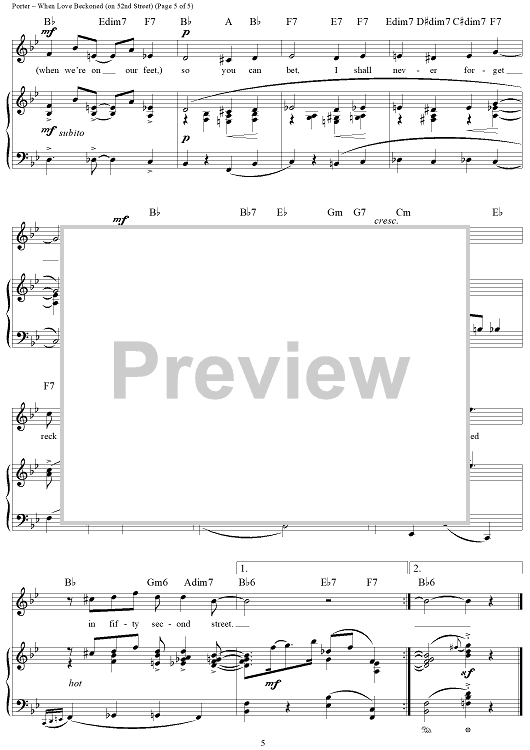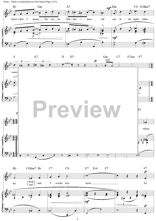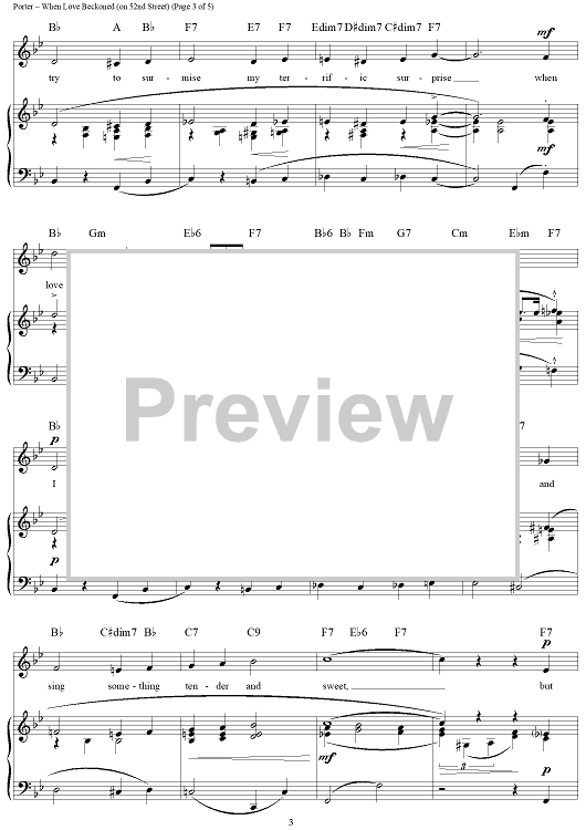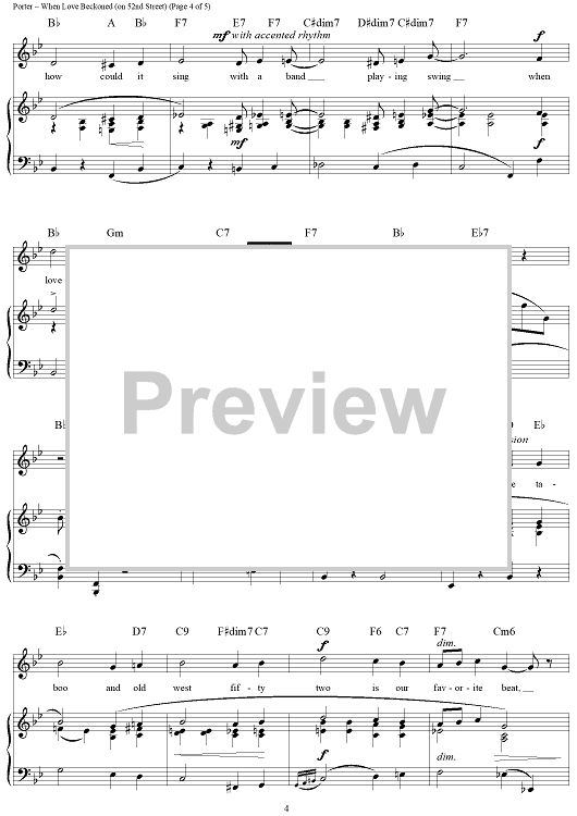 Digital Sheet Music for When Love Beckoned (On 52nd Street) by Cole Porter scored for Piano/Vocal/Chords; id:320754