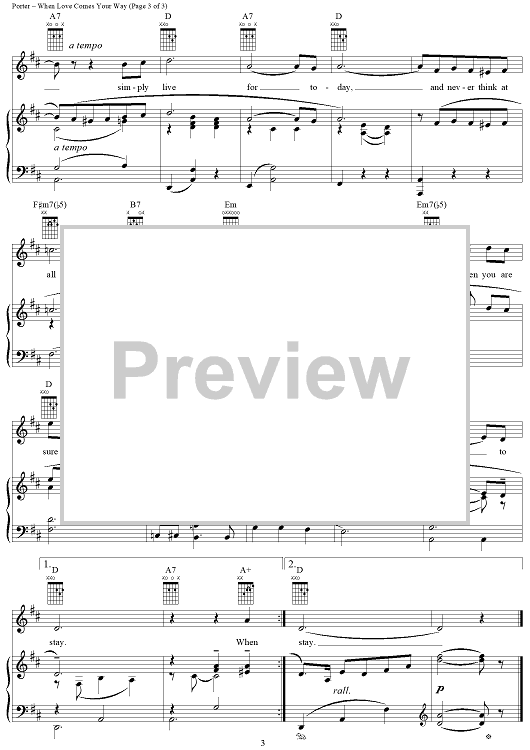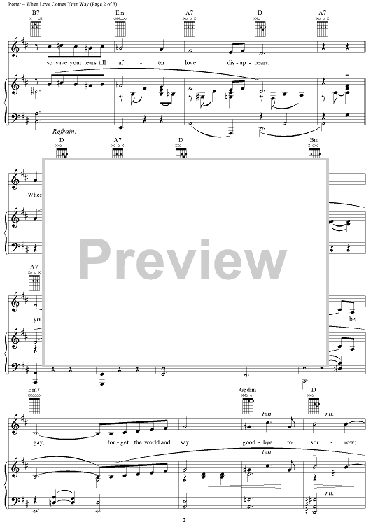 Digital Sheet Music for When Love Comes Your Way by Cole Porter scored for Piano/Vocal/Chords; id:316513