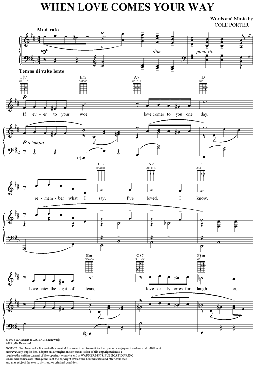 "When Love Comes Your Way" Sheet Music by Cole Porter