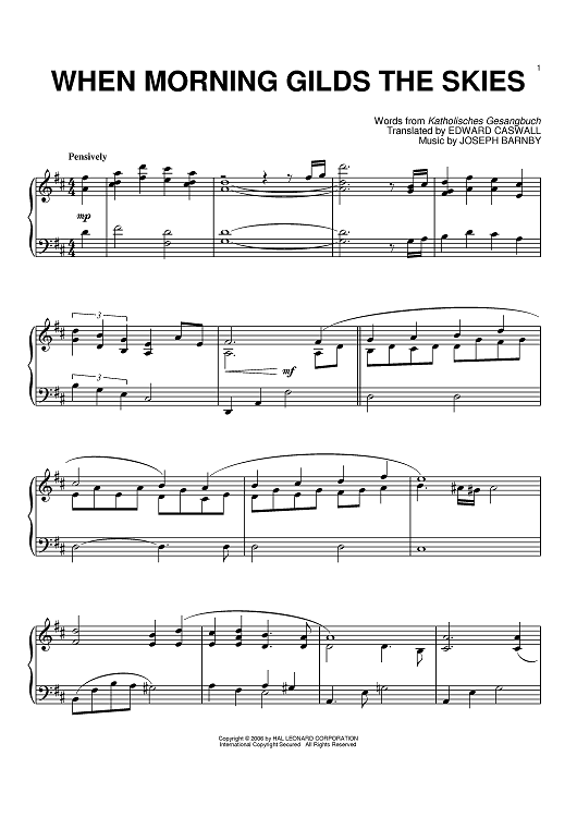 Digital Sheet Music for When Morning Gilds The Skies by Joseph Barnby, Edward Caswall, Katholisches Gesangbuch scored for Piano; id:393251