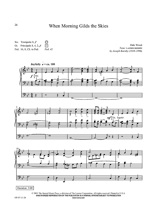 Digital Sheet Music for When Morning Gilds the Skies by Joseph Barnby, Dale Wood scored for Organ Solo; id:434398
