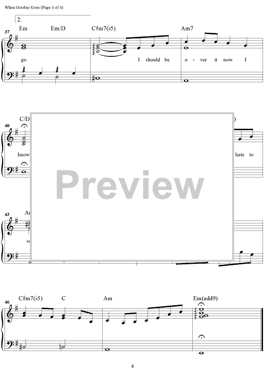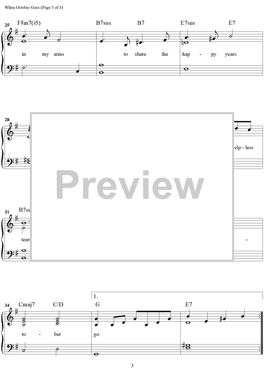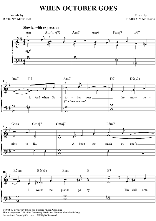 Digital Sheet Music for When October Goes by Johnny Mercer, Barry Manilow scored for Easy Piano/Vocal/Chords; id:467075