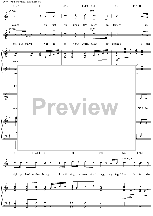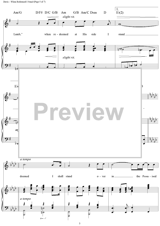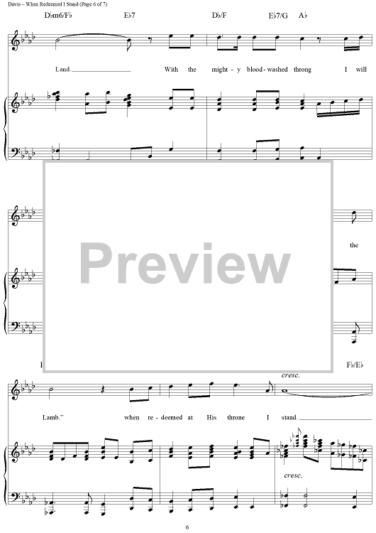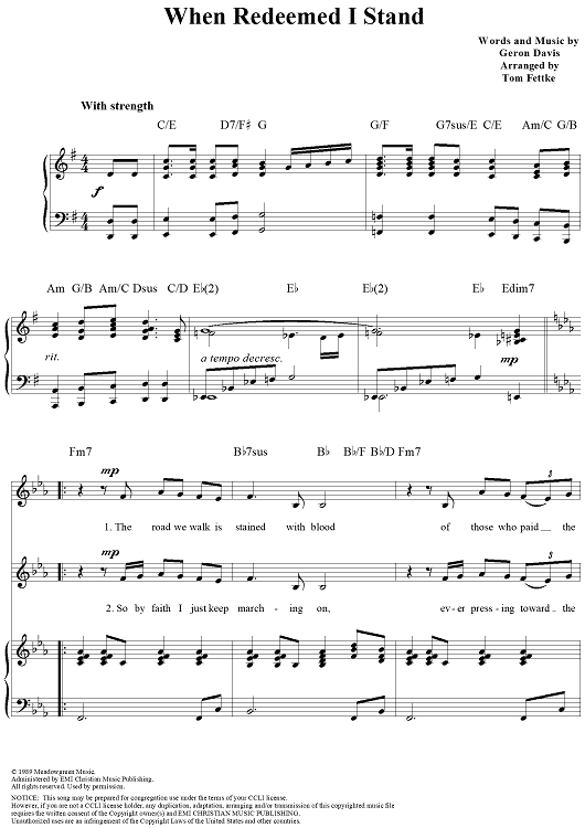 Digital Sheet Music for When Redeemed I Stand by Geron Davis, Tom Fettke scored for Piano/Vocal/Chords; id:119364