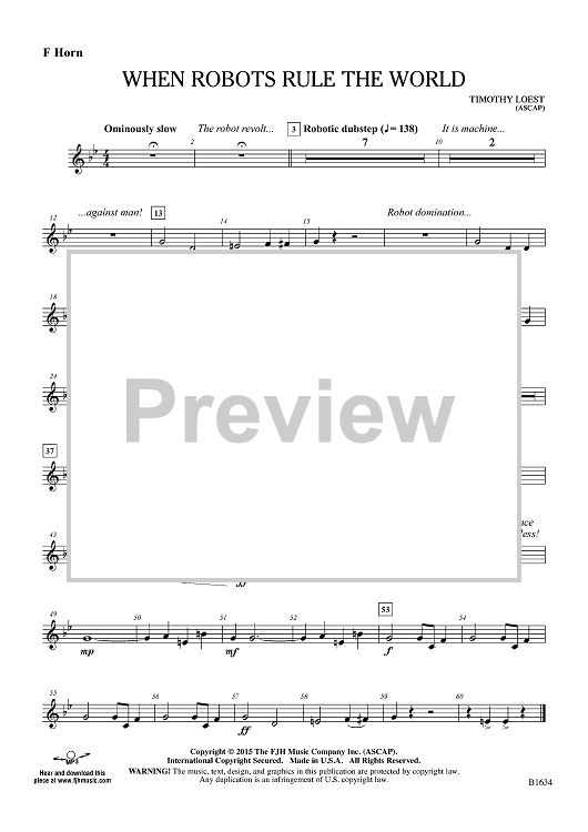 Digital Sheet Music for When Robots Rule the World - F Horn by Timothy Loest scored for Concert Band; id:454987