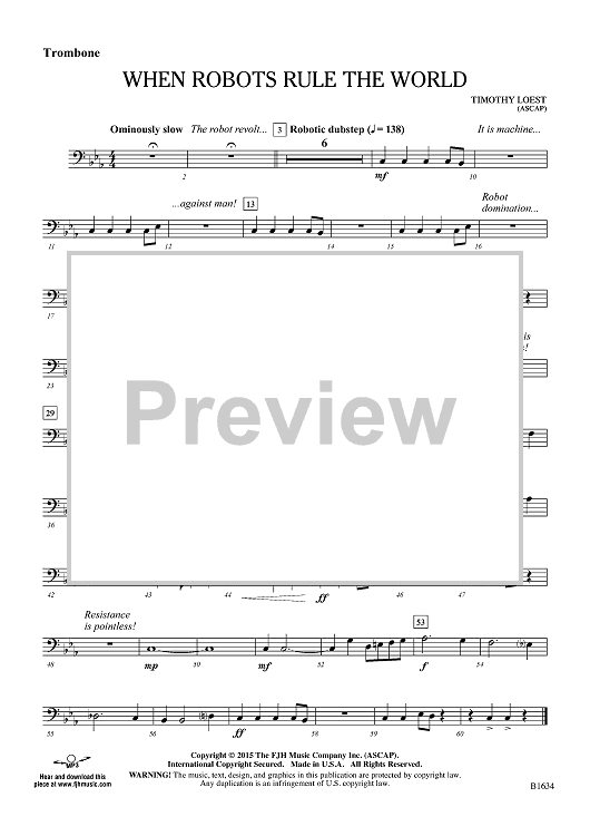 Digital Sheet Music for When Robots Rule the World - Trombone by Timothy Loest scored for Concert Band; id:454988