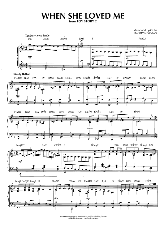 Digital Sheet Music for When She Loved Me - from Toy Story 2 by Randy Newman, Brent Edstrom scored for Piano Solo; id:466211