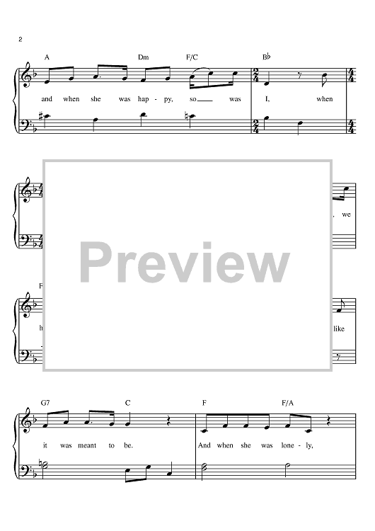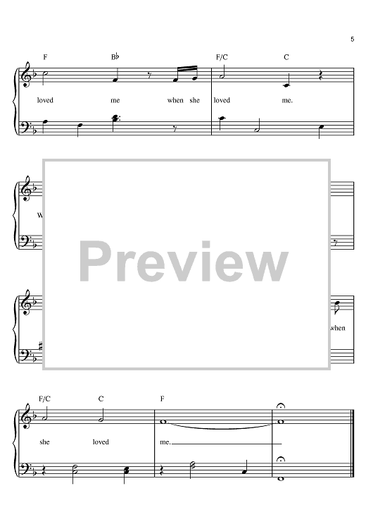 Digital Sheet Music for When She Loved Me by Sarah McLachlan, Randy Newman scored for Easy Piano; id:387377