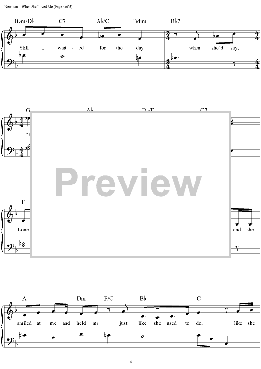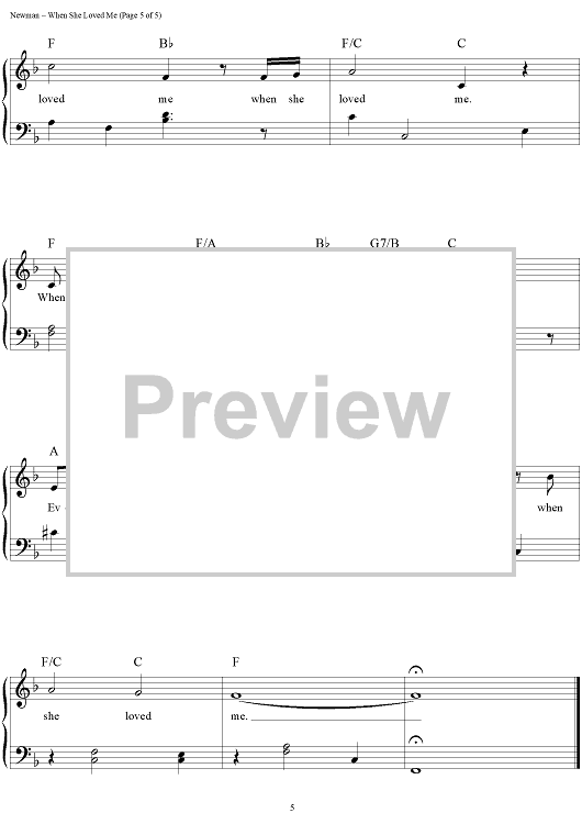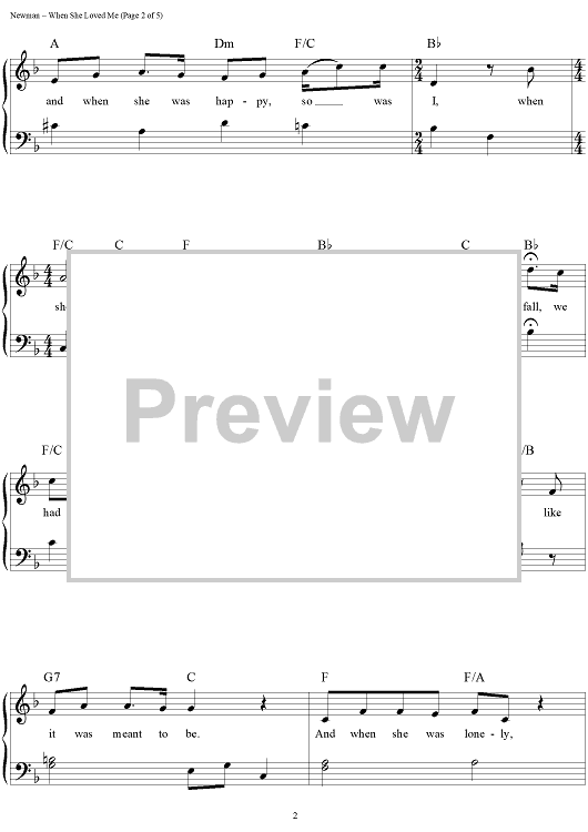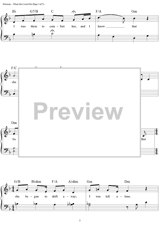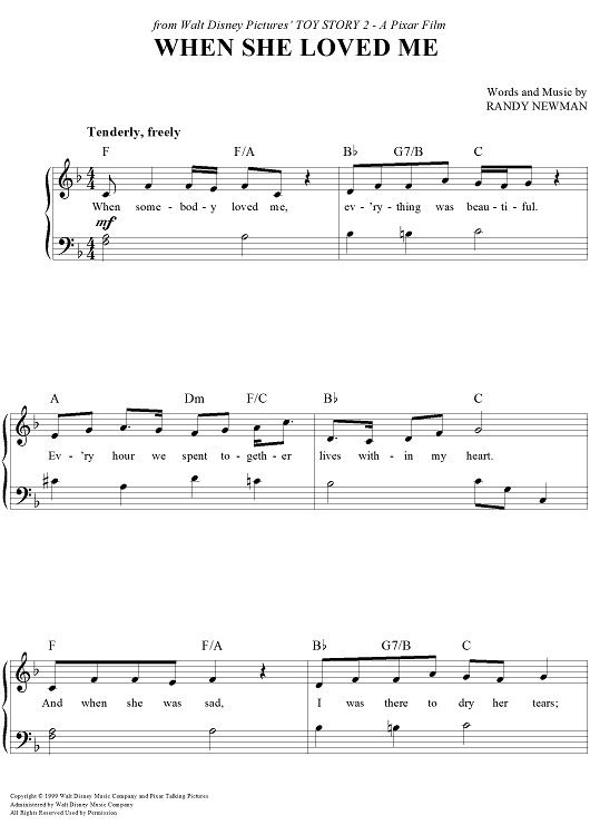 Digital Sheet Music for When She Loved Me by Randy Newman scored for Easy Piano/Vocal/Chords; id:457539