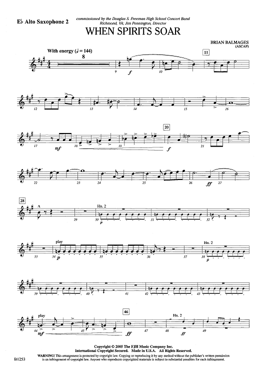 "When Spirits Soar - Eb Alto Sax 2" Sheet Music by Brian Balmages