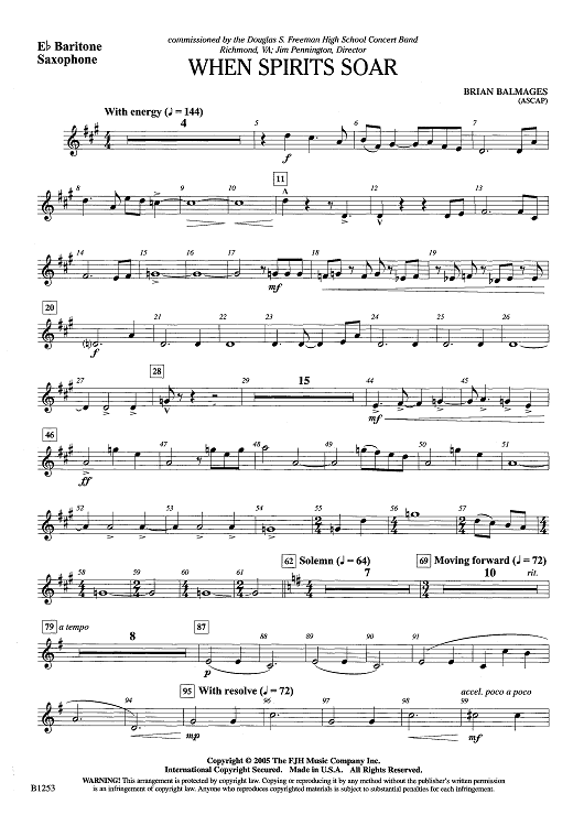 "When Spirits Soar - Eb Baritone Sax" Sheet Music by Brian Balmages