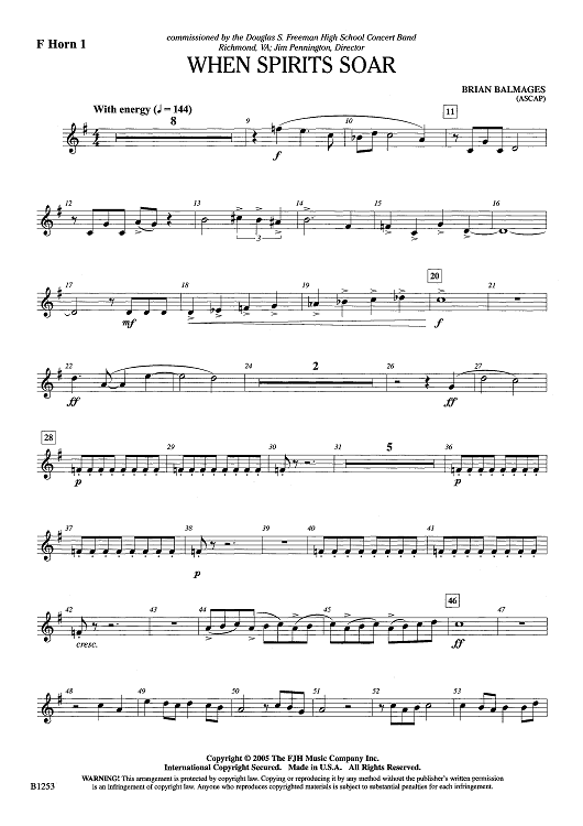 Digital Sheet Music for When Spirits Soar - F Horn 1 by Brian Balmages scored for Concert Band; id:443209