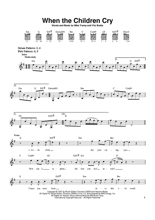 Digital Sheet Music for When The Children Cry by White Lion, Vito Bratta, Mike Tramp scored for Easy Guitar; id:370908