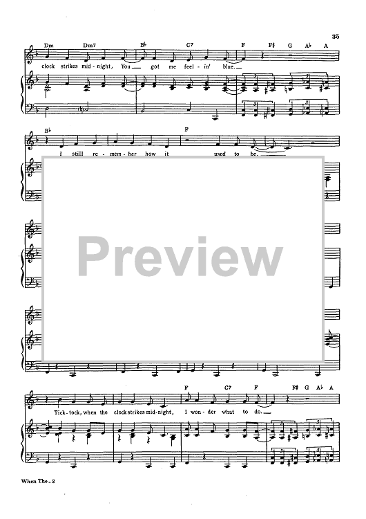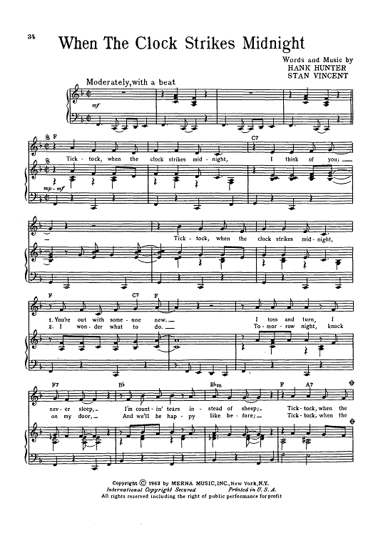 Digital Sheet Music for When The Clock Strikes Midnight by Connie Francis, Stan Vincent, Hank Hunter scored for Piano/Vocal/Chords; id:423078
