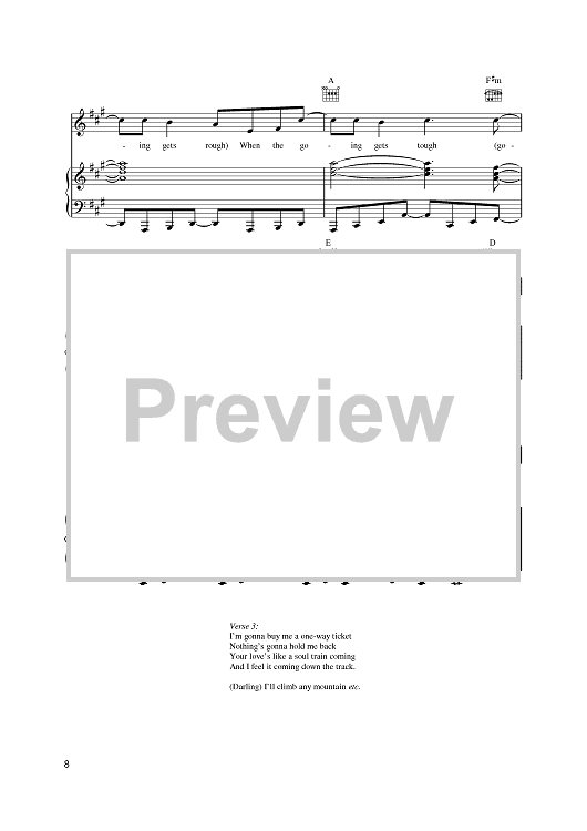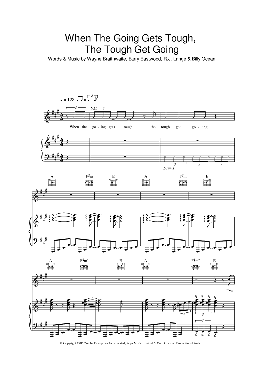 Digital Sheet Music for When The Going Gets Tough, The Tough Get Going by Billy Ocean, Robert Lange, Wayne Braithwaite, Barry Eastwood scored for Piano/Vocal/Chords; id:379658