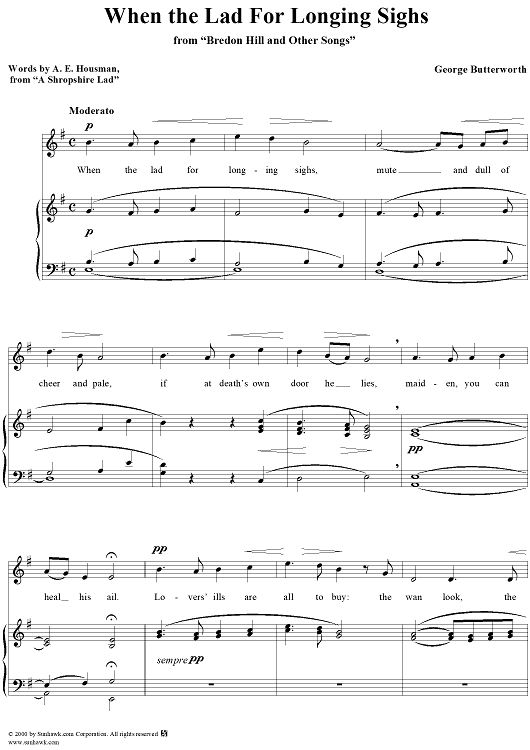 Digital Sheet Music for When the Lad for Longing Sighs by George Butterworth, A. E. Housman scored for Voice/Piano; id:176854