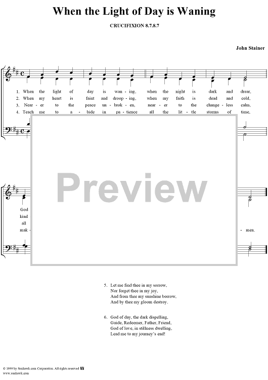 Digital Sheet Music for When the Light of Day is Waning by John Stainer scored for Four-part Mixed Chorus; id:259298