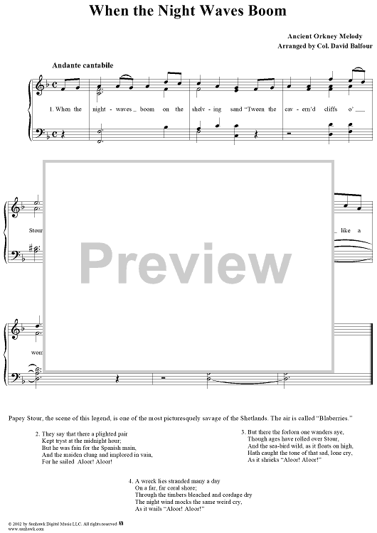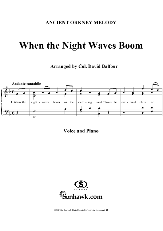 Digital Sheet Music for When the Night Waves Boom by Col. David Balfour scored for Voice/Piano; id:276168