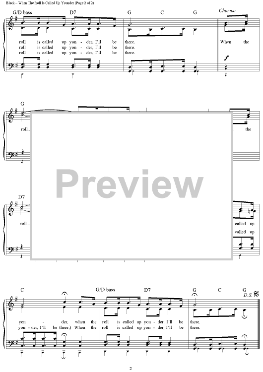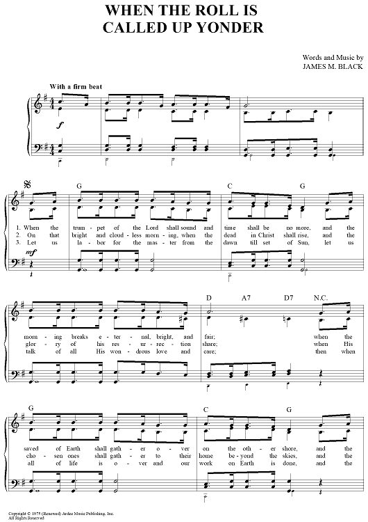 Digital Sheet Music for When The Roll Is Called Up Yonder by James M. Black scored for Easy Piano/Vocal/Chords; id:432862