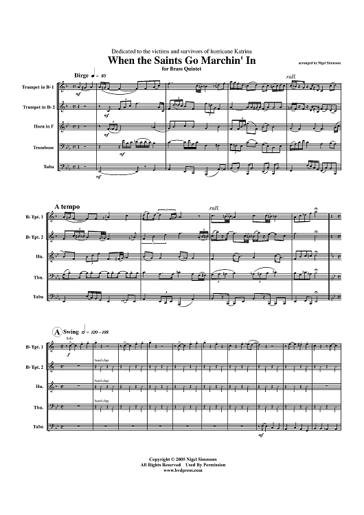 Digital Sheet Music for When the Saints Go Marchin' In - Score by Nigel Simmons scored for Brass Quintet; id:318170