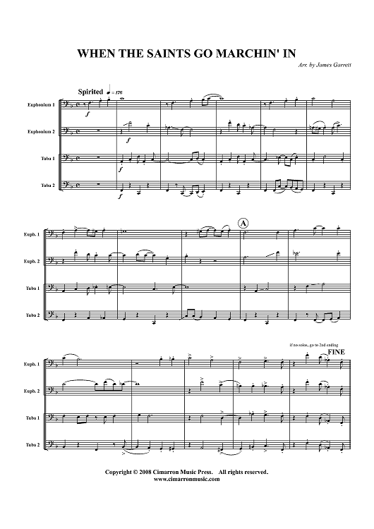 Digital Sheet Music for When the Saints Go Marchin' In - Score by , James Garrett, Traditional scored for Tuba Quartet; id:416770
