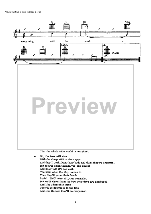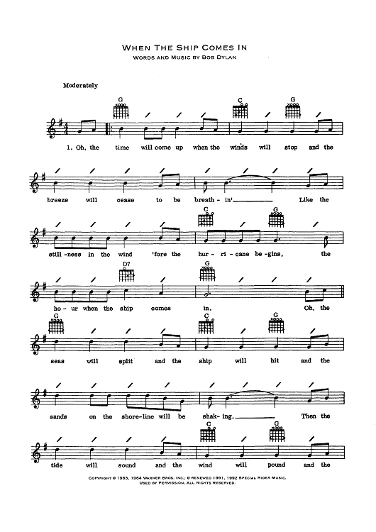 "When The Ship Comes In" Sheet Music by Bob Dylan