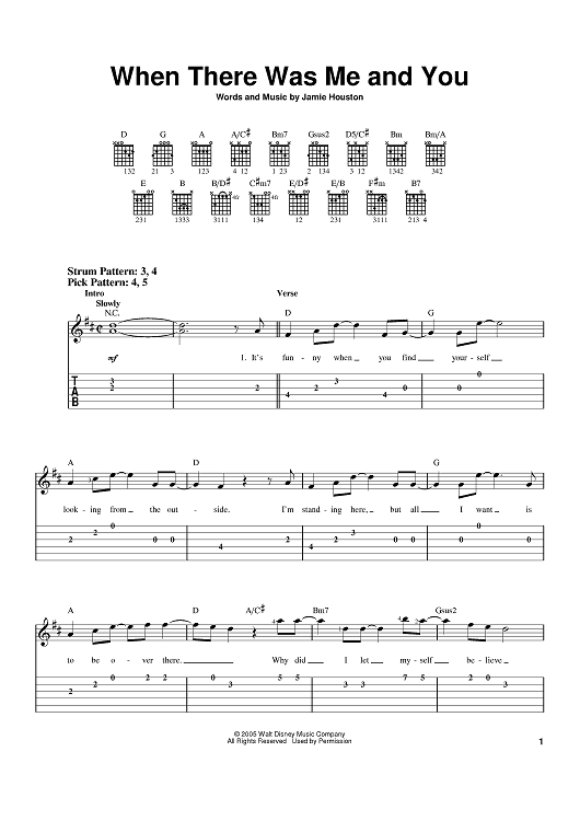 Digital Sheet Music for When There Was Me And You by Jamie Houston scored for Easy Guitar Tab; id:402257