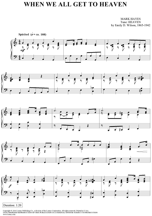 Digital Sheet Music for When We All Get to Heaven by , Mark Hayes, Emily D. Wilson scored for Piano Solo; id:459541