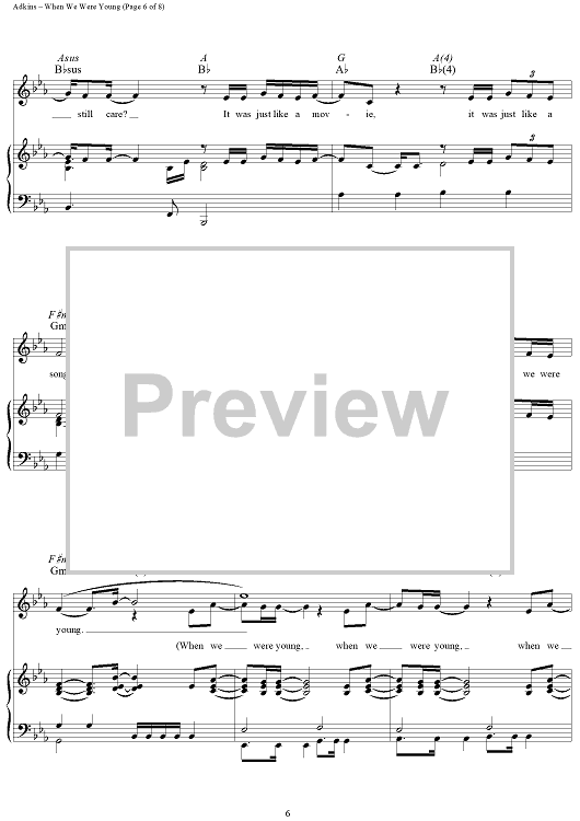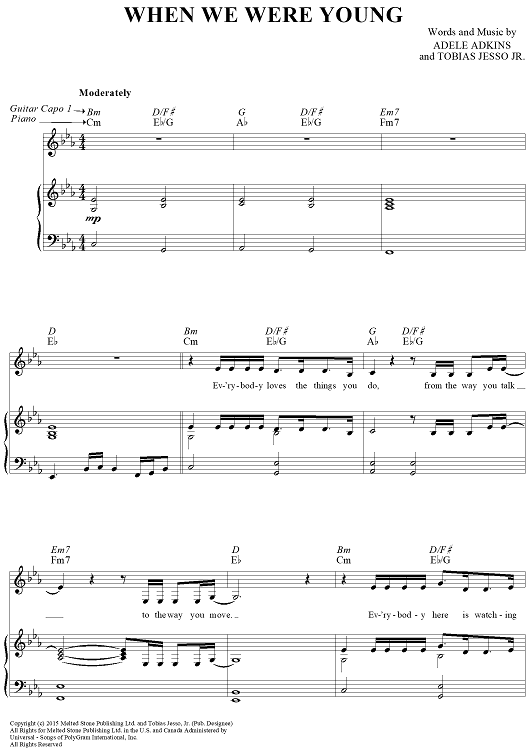 Digital Sheet Music for When We Were Young by Adele Adkins, Adele, Tobias Jesso scored for Piano/Vocal/Chords; id:455462