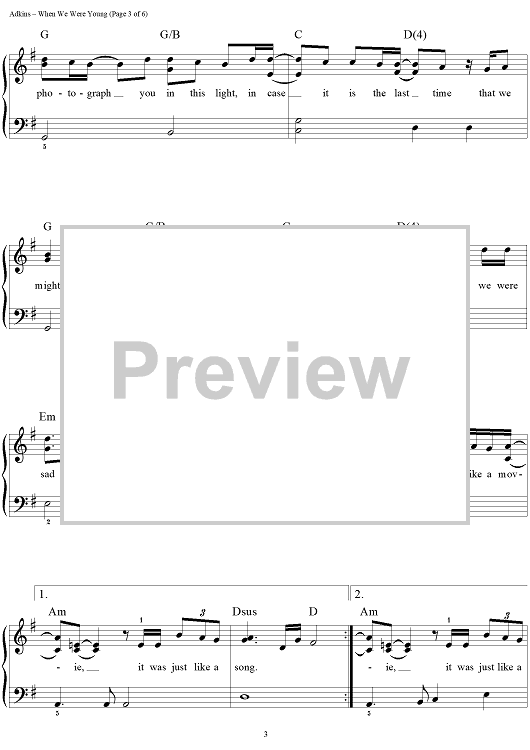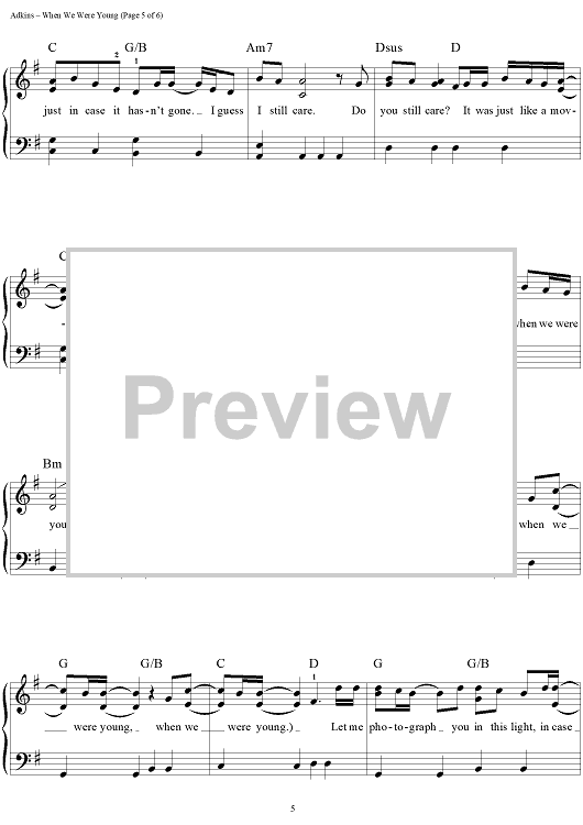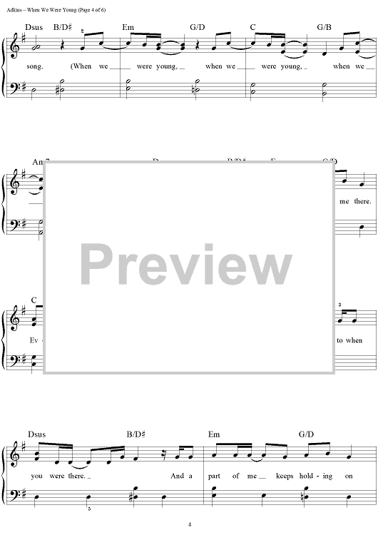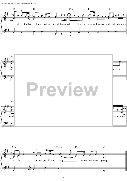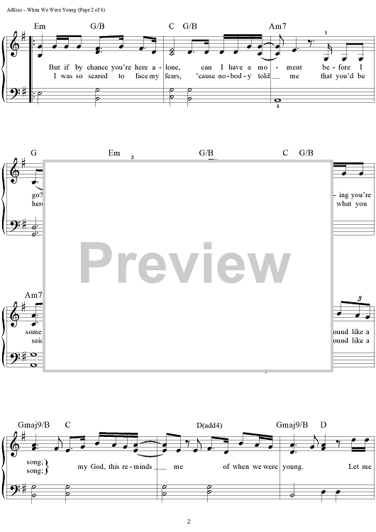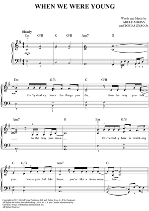 Digital Sheet Music for When We Were Young by Adele Adkins, Adele, Tobias Jesso scored for Easy Piano/Vocal/Chords; id:456819