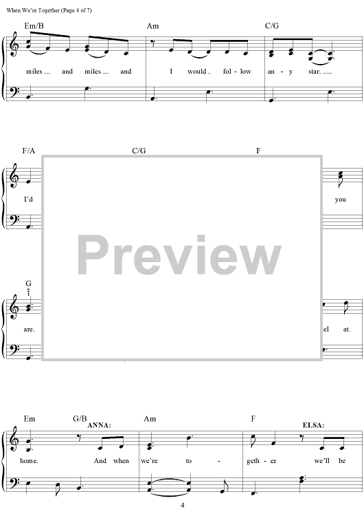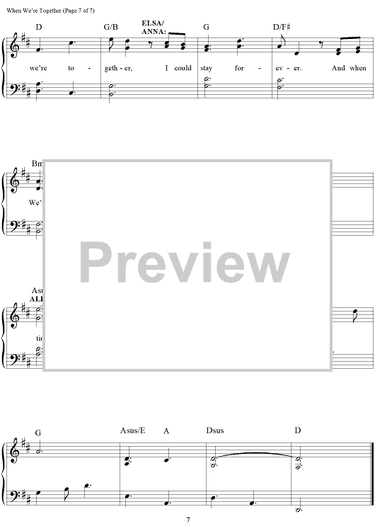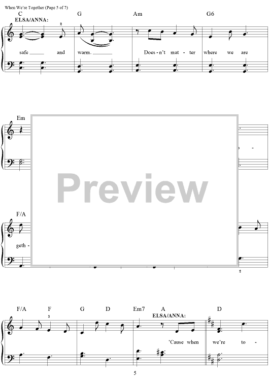 Digital Sheet Music for When We're Together - from Olaf's Frozen Adventure by Kate Anderson, Elyssa Samsel scored for Easy Piano/Vocal/Chords; id:465853