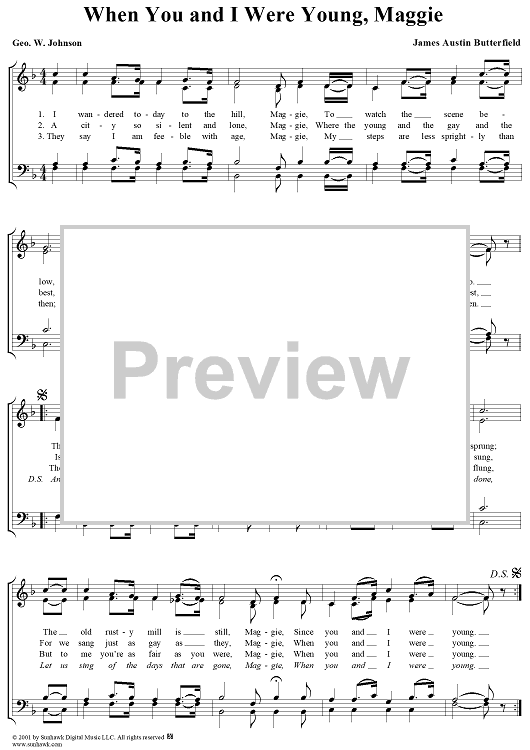 Digital Sheet Music for When You and I Were Young, Maggie by James Austin Butterfield scored for Four-part Mixed Chorus; id:270425