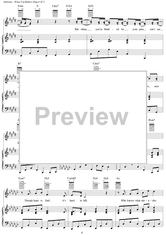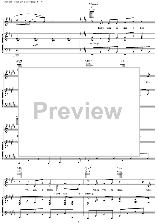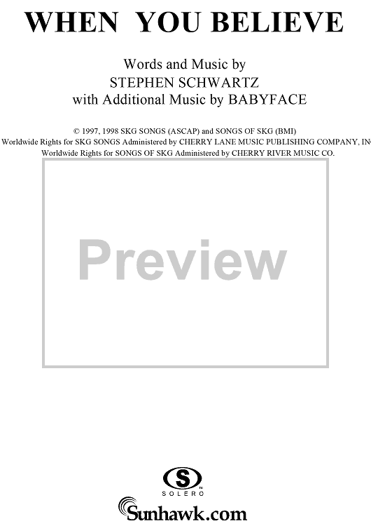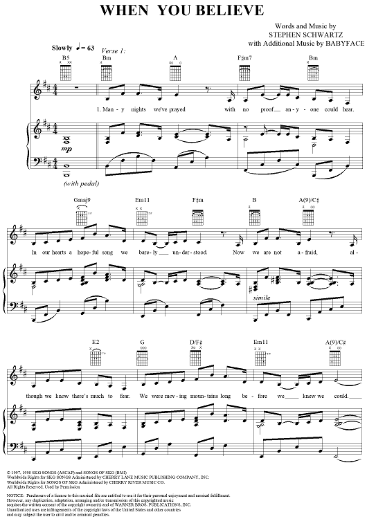 Digital Sheet Music for When You Believe by Stephen Schwartz, Babyface, Whitney Houston scored for Piano/Vocal/Chords; id:257558