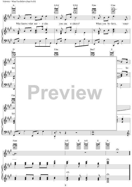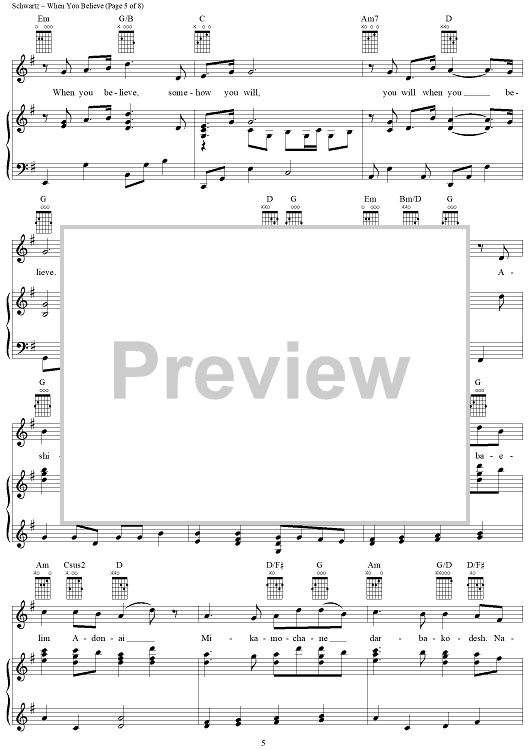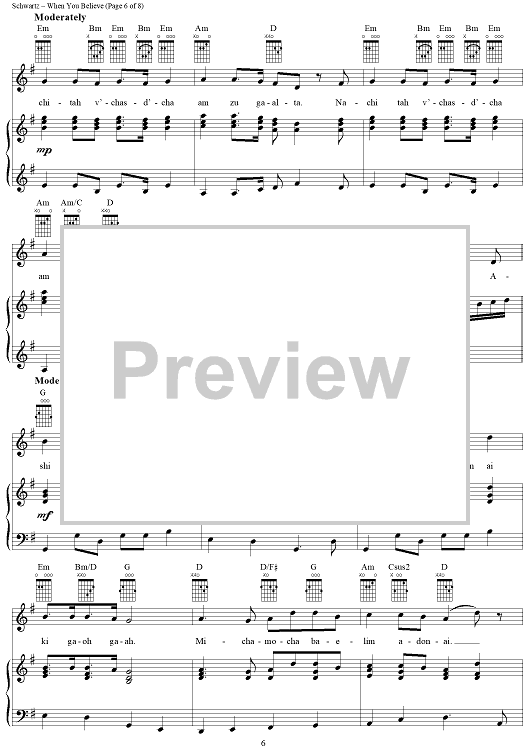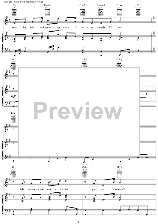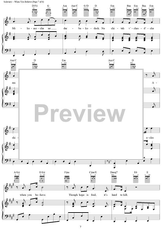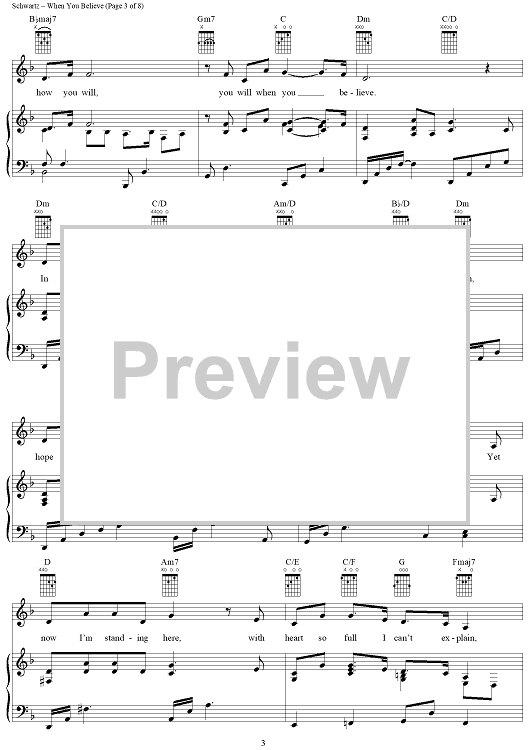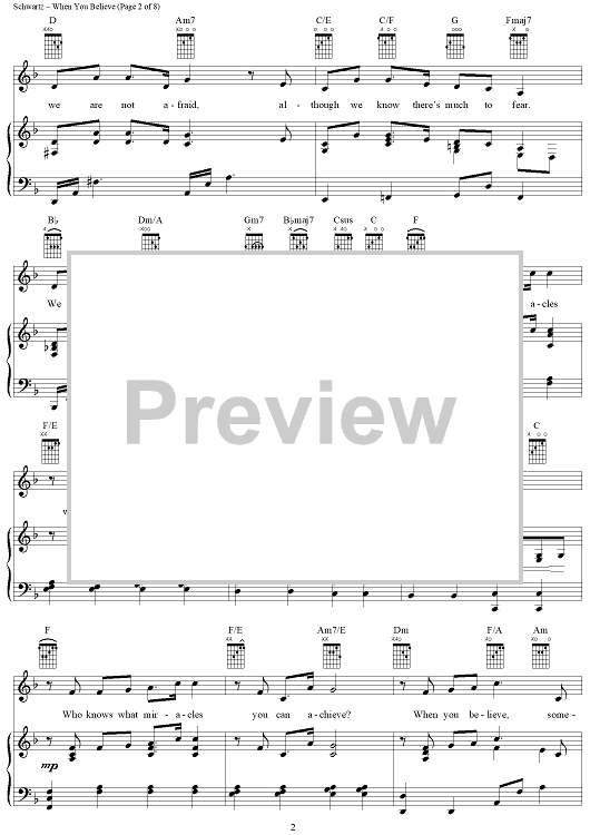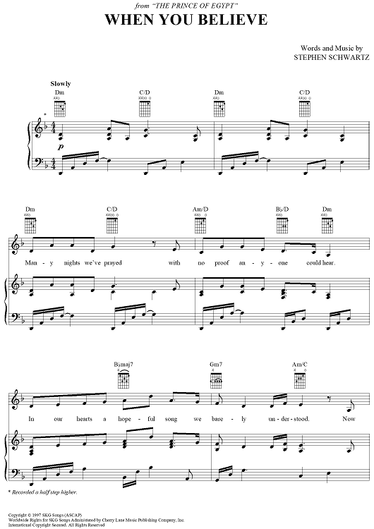Digital Sheet Music for When You Believe by Stephen Schwartz scored for Piano/Vocal/Chords; id:403318