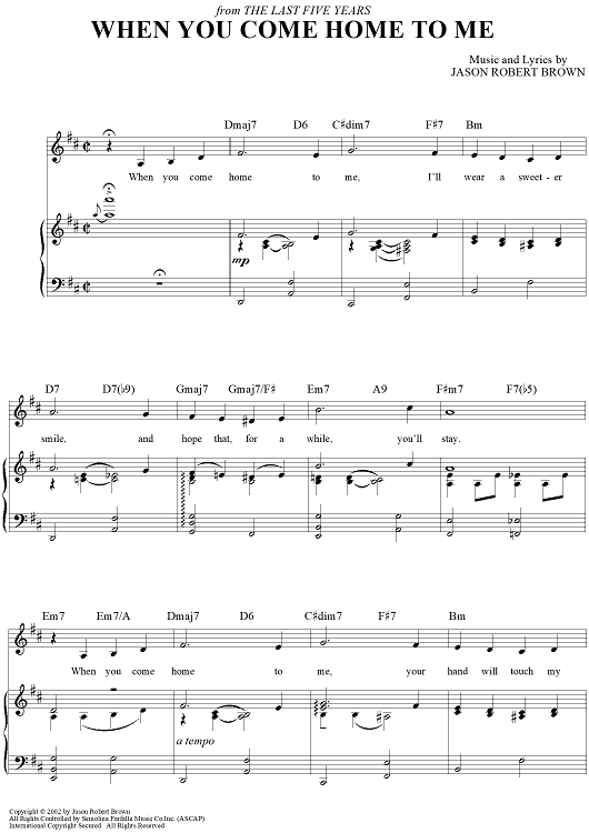 Digital Sheet Music for When You Come Home by Jason Robert Brown scored for Piano/Vocal/Chords; id:410496