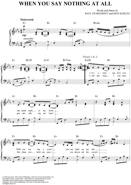 Digital Sheet Music for When You Say Nothing At All by Keith Whitley, Don Schlitz, Paul Overstreet scored for Piano/Vocal/Chords; id:233134