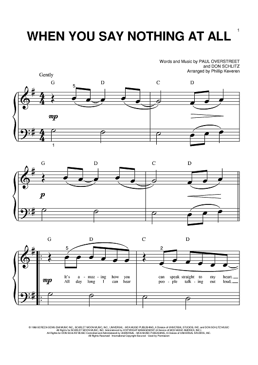 "When You Say Nothing At All" Sheet Music by Keith Whitley