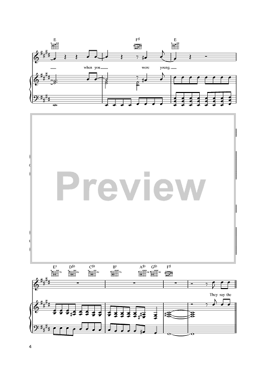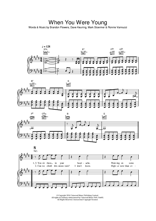Digital Sheet Music for When You Were Young by Brandon Flowers, Dave Keuning, The Killers, Mark Stoermer, Ronnie Vannucci Jr. scored for Piano/Vocal/Chords; id:393313