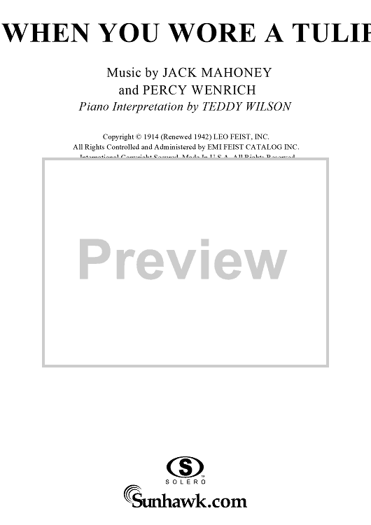 Digital Sheet Music for When You Wore a Tulip (And I Wore a Big Red Rose) by Percy Wenrich, Teddy Wilson, Jack Mahoney scored for Piano Solo; id:251659